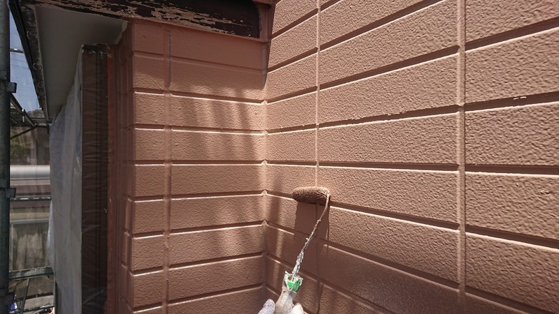 細かな所などは刷を使用し、大きな面はローラーを使用して均一括・外壁全体に馴染ませるように塗装していきます。