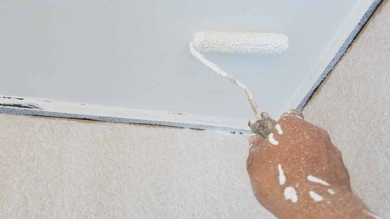 細かな所などは刷を使用し、大きな面はローラーを使用して均一括・軒天全体に馴染ませるように塗装していきます。
