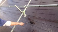 コロニアルの細部にわたり刷毛やローラーを使用して、板金とコロニアルの重なり目・コロニアル同士の重なり目などしっかり塗装していきます。