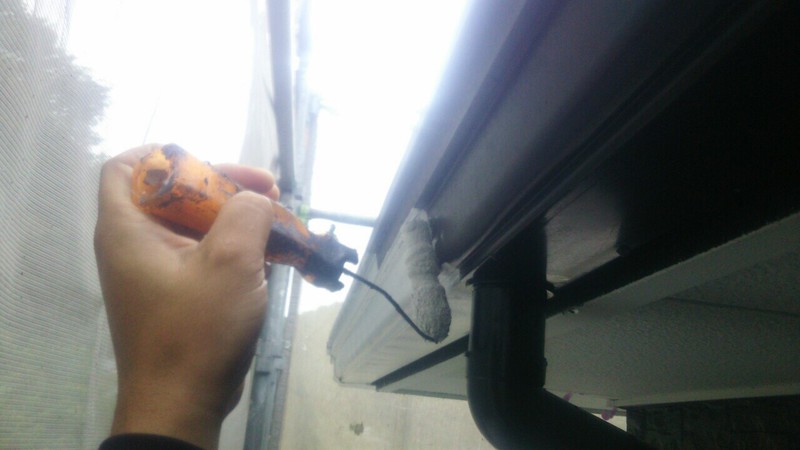 軒樋の中塗り・上塗りに使用する材料は、SK化研さんの「クリーンマイルドSI」を使用します。