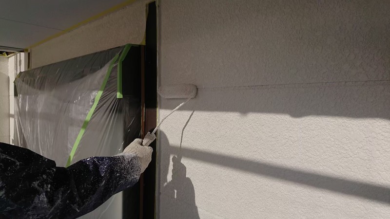 細かな所などは刷を使用し、大きな面はローラーを使用して均一括・外壁全体に馴染ませるように塗装していきます。